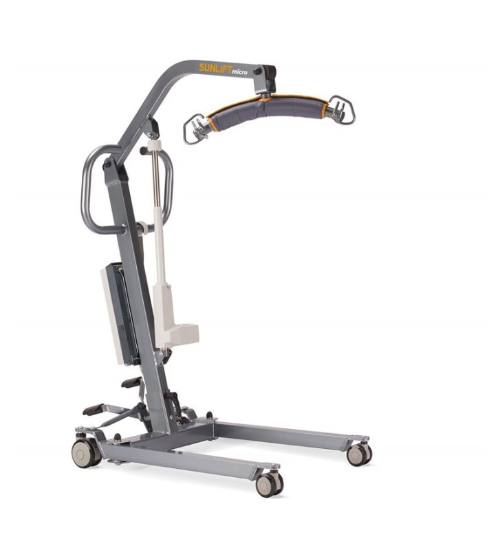 La grúa de elevación y traslado de pacientes Micro sorprende por sus reducidas dimensiones, y convence porque es muy fácil de utilizar en el interior de la casa. El diseño compacto de las patas la convierte en la grúa doméstica ideal, y su elevado rango de elevación en una grúa muy polivalente ya que permite levantar del suelo a una persona y elevarla hasta la cama.